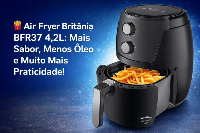 ✅ Resumo: A Air Fryer Britânia BFR37 Preto com Timer 4,2 L é uma opção versátil, prática e acessível para quem quer cozinhar de forma mais saudável e eficiente — seja fritando, assando ou grelhando alimentos com facilidade no dia a dia.
