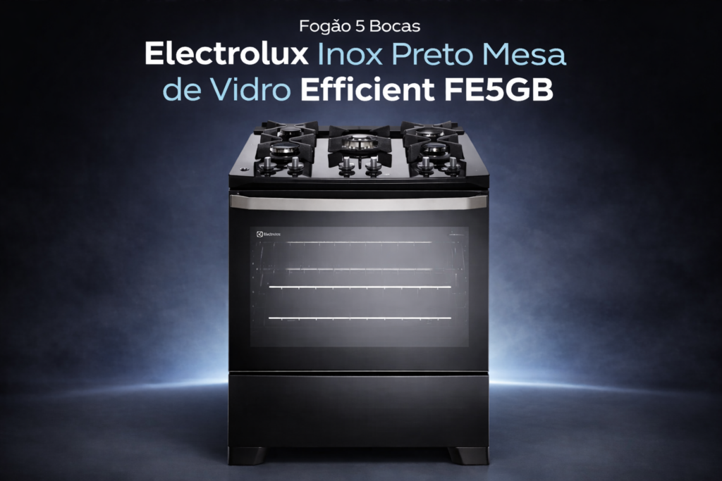 Desenvolvido para quem valoriza desempenho e sofisticação, esse modelo combina mesa de vidro temperado, acabamento em inox preto elegante e 5 bocas potentes, oferecendo mais agilidade e controle no dia a dia. Além disso, a linha Efficient da Electrolux garante melhor aproveitamento do gás, cozimento uniforme e praticidade na limpeza, tornando o fogão perfeito tanto para famílias quanto para quem gosta de receber. Se você busca um fogão moderno, econômico e com excelente custo-benefício, o Electrolux FE5GB se destaca como uma das melhores opções da categoria.