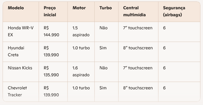 Neste artigo, você vai entender por que o novo WR-V pode ser o SUV compacto mais interessante do ano, e como ele se posiciona frente aos concorrentes como Hyundai Creta, Nissan Kicks e Chevrolet Tracker.