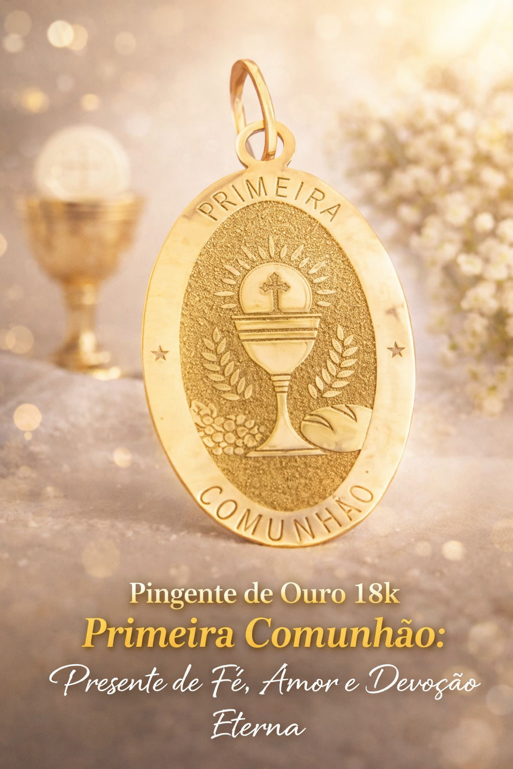O pingente de ouro 18k da Primeira Comunhão não é apenas um acessório. Ele é uma lembrança eterna de um sacramento sagrado, usado para proteger, inspirar e lembrar diariamente da presença de Jesus.