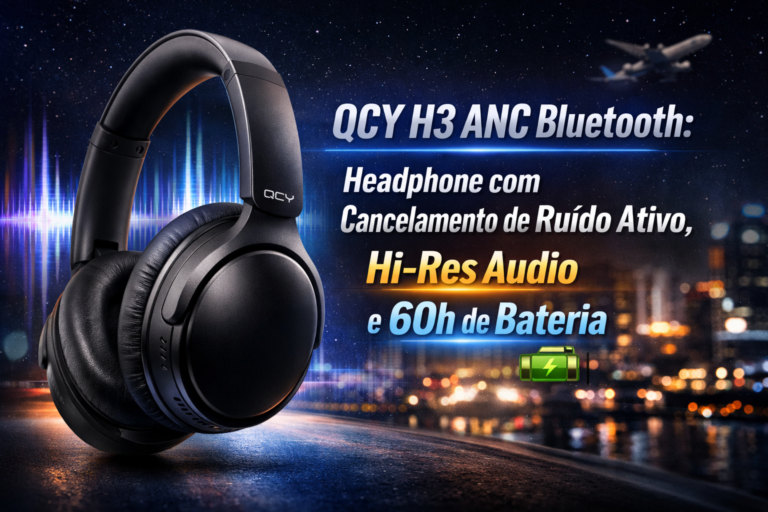 O QCY H3 ANC Fone de Ouvido Bluetooth é a escolha perfeita para quem busca som de alta qualidade, conforto prolongado e tecnologia avançada. Com Cancelamento de Ruído Ativo (ANC), certificação Hi-Res Audio e Bluetooth 5.4, este headphone entrega uma experiência sonora imersiva, ideal para trabalho, estudos, viagens e entretenimento. Além disso, sua bateria de até 60 horas de reprodução e a conexão multipontos tornam o QCY H3 ANC um dos modelos mais completos e desejados da categoria.