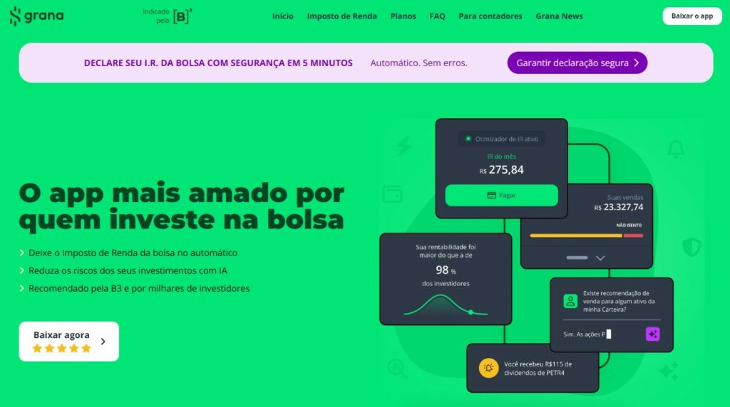 O Grana é o app parceiro da B3 que resolve 100% do Imposto de Renda das minhas operações na bolsa.