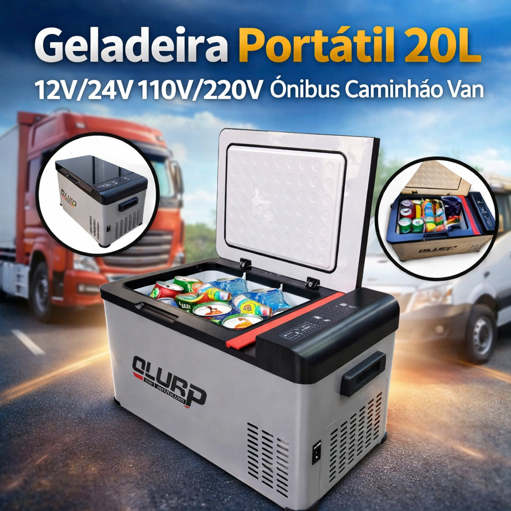 Com capacidade de 20 litros, essa geladeira portátil se destaca pela versatilidade de voltagem, funcionando perfeitamente em 12V e 24V para veículos como caminhões, ônibus e vans, além de 110V e 220V para uso em casa, hotéis ou pontos de apoio. Seu design compacto, aliado ao baixo consumo de energia e ao resfriamento eficiente, garante máximo desempenho sem comprometer a bateria do veículo.